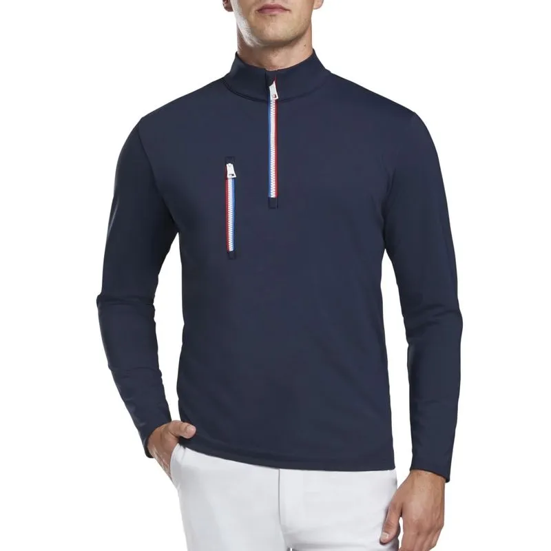 The G/Fore Men's Daytona 1/4 Zip Jacket is made with performance interlock, this everyday layer has a mossed interior for added warmth and comfort. Featuring our signature 'Daytona' Tri-Color stripe details throughout, with a front zipper pocket for simple storage. Shop G/Fore gear and more at Worldwide Golf Shops.