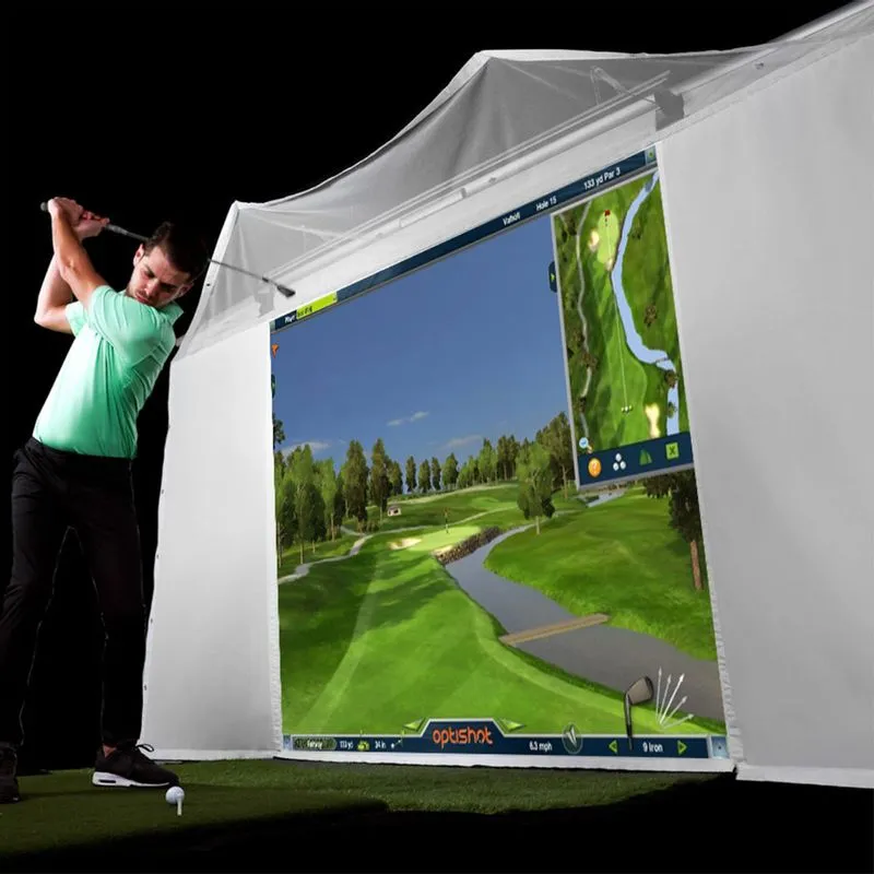 This is our Golf in a Box 5. This package includes our OptiShot 2 swing pad and software, stance mat, retractable pro enclosure, impact screen, and projector. Shop Optishot at Worldwide Golf Shops today!