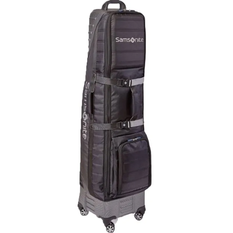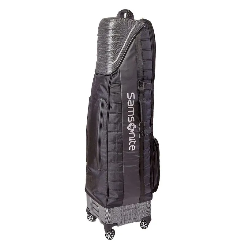 The Samsonite "The Protector" Golf Travel Cover is a lightweight hard/soft golf travel case boasting a durable, solid ABS Protective Head Cover and Base which shields your golf clubs from the wear-and-tear of air travel.