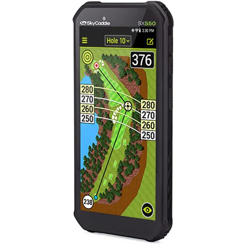 The SX550 is the premium GPS handheld providing the very “best view” in golf with vivid course graphics and distances you can trust. It comes preloaded with more than 35,000 course maps from around the world.