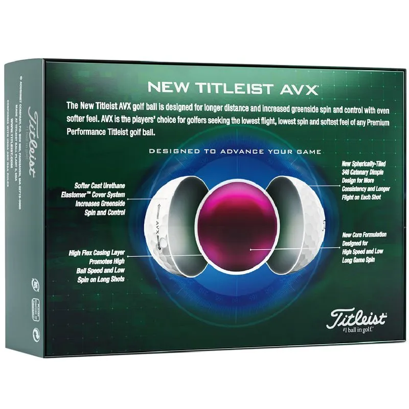New Titleist® AVX® golf balls deliver longer distance along with a very soft feel and are constructed with high-performance urethane for more precise control on shots into the green. Shop everything Titleist at Worldwide Golf Shops today!
