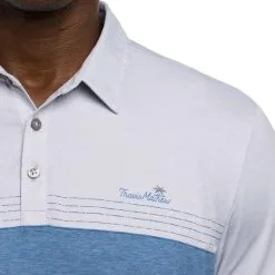 The TravisMathew Men's Libations Polo delivers a signature look, but with a fresh update. Featuring an iconic color-blocked style, the polo offers something new with the addition of a chest stripe and unique TravisMathew graphic logo. Shop TravisMathew and more at Worldwide Golf Shops!