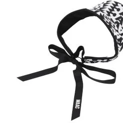 Women's ribbon-type sun cap utilizing seasonal patterns.